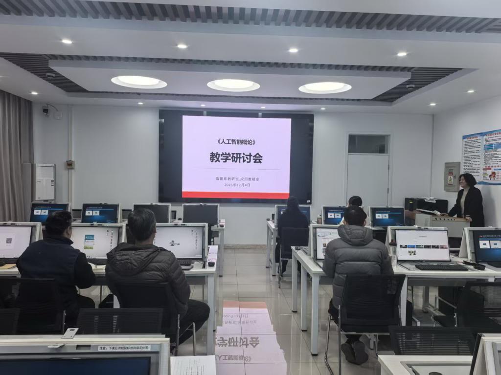 为高质量推进全校计算机通识课程《人工智能概论》期末考试工作,2025年12月4日下午,太阳成集团tyc539在第三教学楼C115教室组织召开了课程期末考试专题研讨会。会议由数据库教研室主任张静妙主持,课程教学团队全体教师参加,共同为考试的科学设计与顺利实施建言献策。