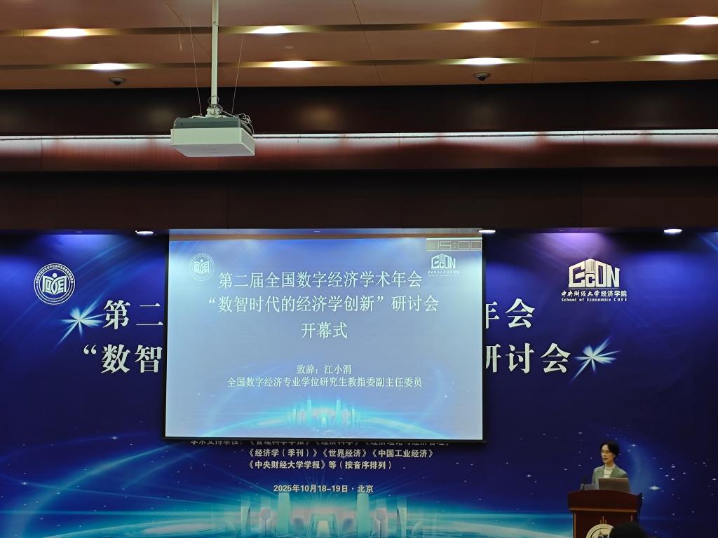 全国数字经济学术年会是全国数字经济专业学位研究生教育指导委员会主办的全国性数字经济高水平学术会议。本届学术年会由中央财经大学经济公司承办,旨在研讨数字经济和人工智能快速发展背景下的经济学理论、实践和政策创新,定向受邀的百余名专家学者参加会议。