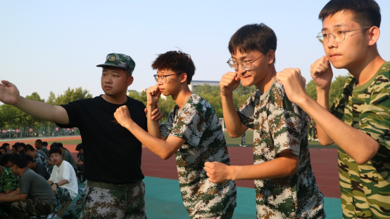 绿茵场上,管科学子英姿飒爽、神采飞扬,军体拳口号声声回荡。一招一式,展军人豪情;一举一动,扬学子朝气。
