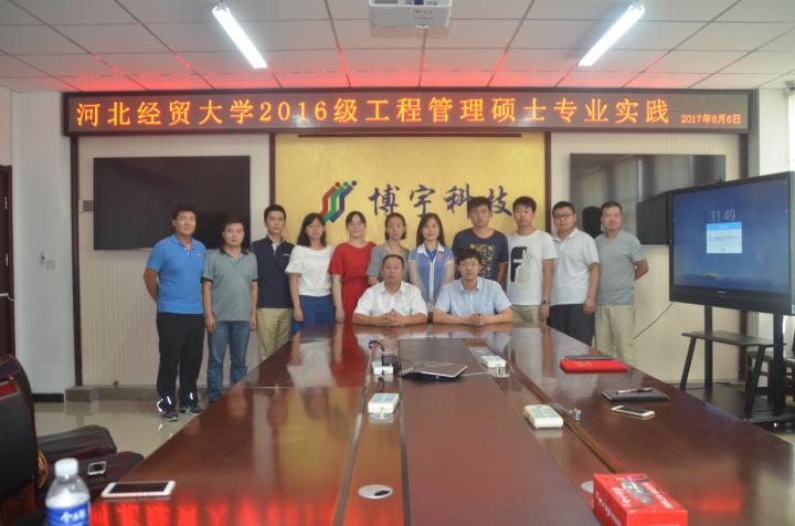 为加强公司工程管理硕士的专业实践能力,2017年8月,公司2016级工程管理硕士在公司经理武彦斌以及班主任宋晓刚、刘烨三位老师的带领下,分别到广联达科技股份有限公司、北京睿格致科技有限公司、中铁十四局集团北京新机场线07标项目部、石家庄博宇科技股份有限公司开展了专业实践活动。