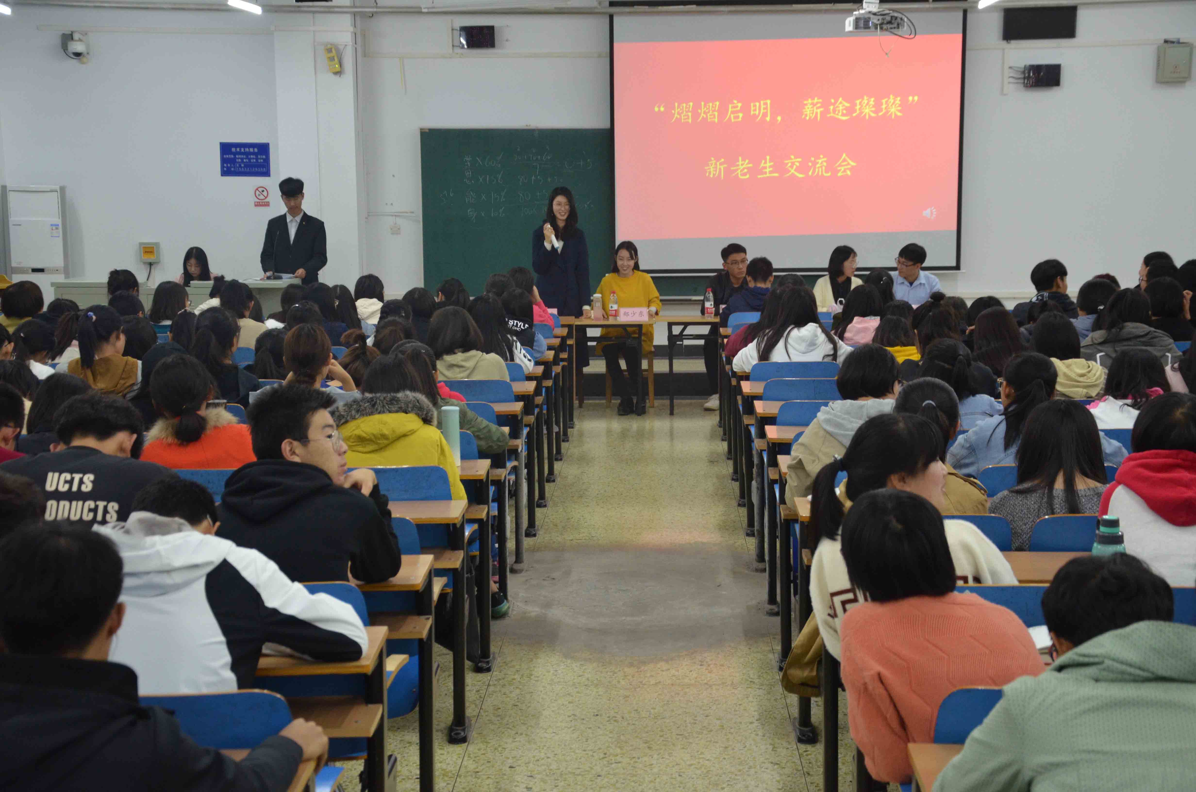 10月25日晚,管理科学与工程公司在第三教学楼C509教室召开了以“熠熠启明,薪途璨璨”为主题的新老生交流会,来自各专业的16级优秀员工代表杜鹏飞,赵梦凡,赵珺,郑少东和郭凤鸣出席本次交流会,18级全体新生到场参加。