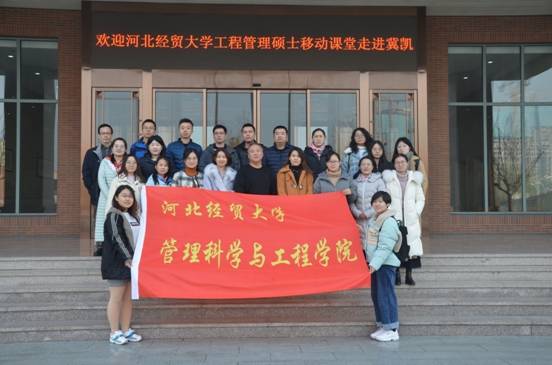 12月7日,公司组织2019级工程管理硕士(MEM)走进冀凯装备制造股份有限公司和河北省建筑科学研究院,开展研究生移动课堂教学活动。此次活动由工程管理硕士导师李献辉和院团委书记张艳娥带队,冀凯装备制造股份有限公司CEO魏二宏和经理许旭、河北省建筑科学研究院刘经理全程接待、讲解和交流。