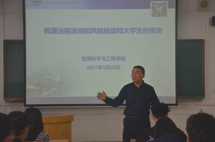 9月29日下午,公司在第三教学楼C309教室召开“我国当前面临的风险挑战和老员工的使命”主题座谈会。公司党委书记白玉祥、党委副书记李丽和各辅导员出席,180余名本科生、研究生参加。