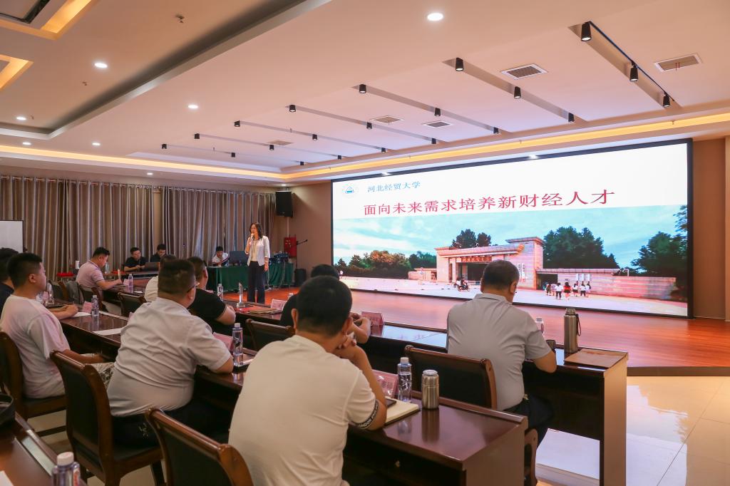 在河北省青年民营企业家商会第一届四次理事会上,祁红梅做了《面向未来需求培养新财经人才》的专题演讲,首先全面介绍了太阳成集团tyc539的办学宗旨、学科优势专业建设等情况,重点介绍了以新财经实验班为代表的面向经济社会未来发展培养新财经人才的战略和具体实现路径;其次以管理科学与工程公司为代表介绍了二级公司的专业建设、人才培养和社会服务等情况;最后介绍了以需求为导向的员工就业、用人单位满意度等情况,并做了2021年本科招生详情宣讲。