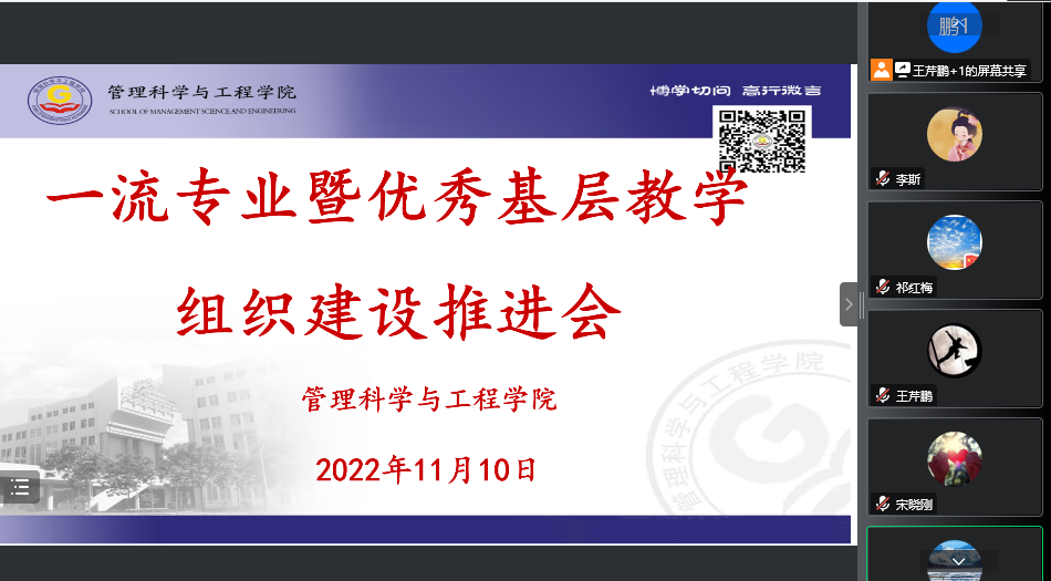 2022年11月10日,公司在线上召开一流专业暨优秀基层教学组织建设推进会。会议由副经理王芹鹏主持,经理祁红梅、各教研室主任及骨干教师参加。