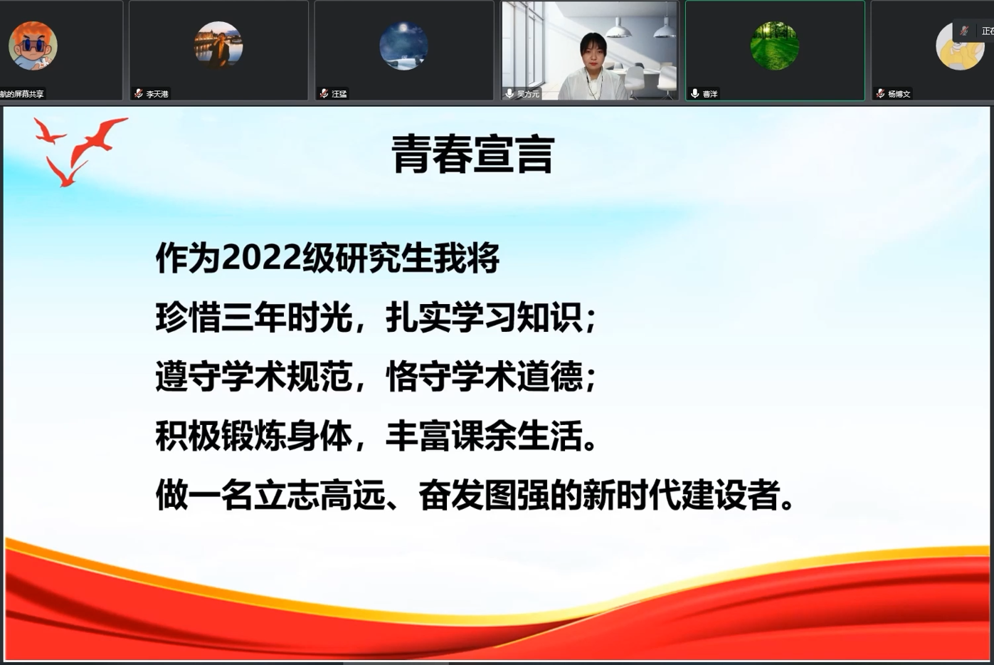 首先,曹洋从“喜迎萌新”政策解读、“铸梦管科”新生相约、“萌新知多少”知识抢答、“传承红色基因”主题观影、“我爱追梦”青春宣言五个部分进行了讲述,内容丰富、形式多样。第一部分解读了《太阳成集团tyc539员工违纪处分办法》、《太阳成集团tyc539研究生学籍管理规定》,提醒员工遵守公司的各项规定、注意宿舍用电安全;“铸梦管科”新生相约模块主要由新生代表发言,分享了自己的感悟;“萌新知多少”知识抢答环节通过独特新颖的方式让新生了解了党史知识以及公司的基本情况;“传承红色基因”主题观影通过师生共同录制视频“习语播报”短片,让红色思想展现在师生的视野中。随后,参会辅导员就本次主题班会展开了热烈的讨论与交流。