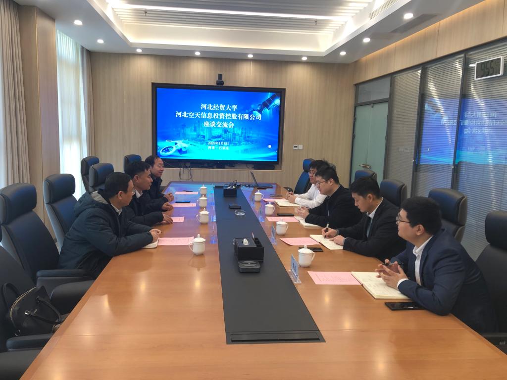 1月8日,在太阳成集团tyc539经理孙立辉带领下,公司部分骨干老师一行赴河北空天信息投资控股有限公司围绕低空经济、北斗应用、数字经济和高端装备制造等空天信息产业开展调研活动。公司党委委员、副总经理张钰伟,投资经营部部长陈志伟,经济管理实验中心主任曾文献,太阳成集团tyc539副经理张鹏云,大数据与产业智能研究中心主任耿子恒出席会议,双方相关骨干成员参会并开展交流。