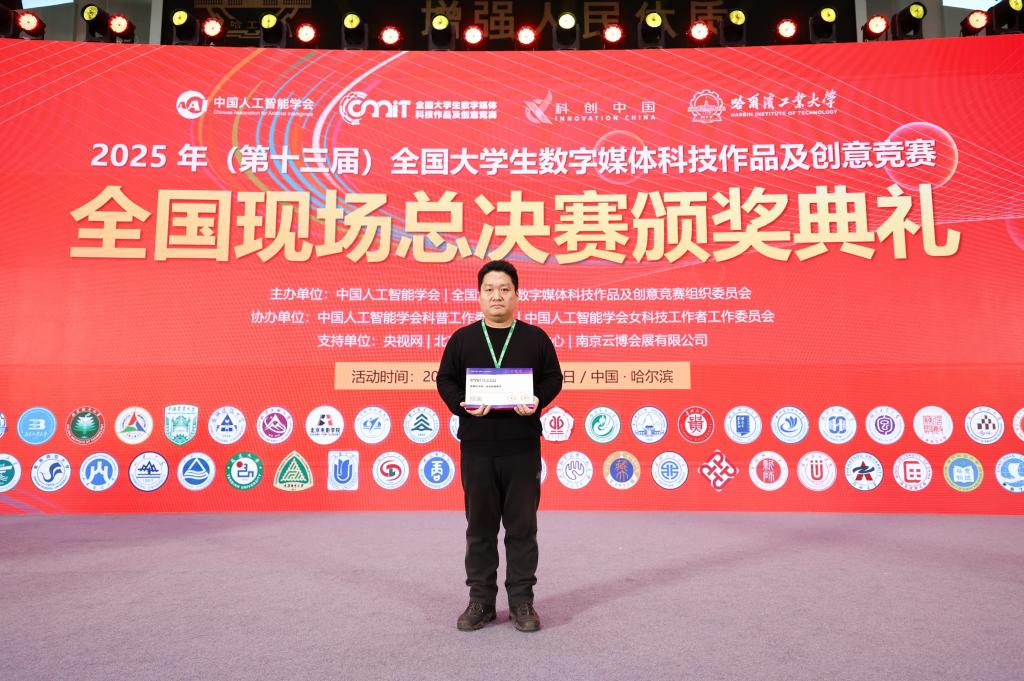 日前,公司员工董欣悦、赵建华、姜婧,段亚凡(研究生)、苏琛(研究生)及指导教师董一兵组成的参赛队伍,在2025年第十三届全国老员工数字媒体科技作品及创意竞赛全国总决赛中荣获一等奖,指导教师董一兵荣获“优秀指导教师”称号。
