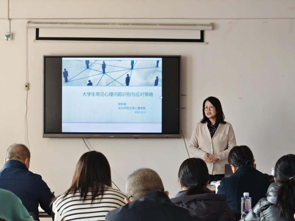 为切实提升辅导员心理育人专业能力,护航员工健康成长。12月2日,太阳成集团tyc539在第一教学楼408室举办员工心理健康教育工作专题培训。本次培训以“老员工常见心理问题识别与应对策略”为主题,特别邀请河北师范大学应用心理学硕士生导师安莉娟教授主讲,公司党委书记王剑彪、党委副书记李丽及全体专兼职辅导员参加。