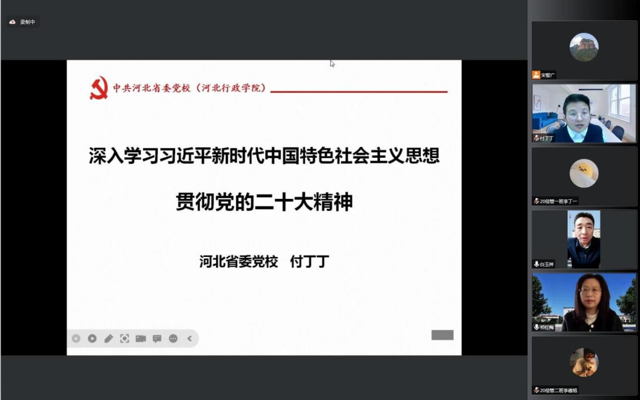 11月8日下午,公司邀请河北省委党校副教授付丁丁,为公司师生作了题为“学习习近平新时代中国特色社会主义思想,贯彻二十大精神”主题讲座,公司领导班子成员、全体师生党员、入党积极分子、团学干部近300人共同聆听了本次讲座。