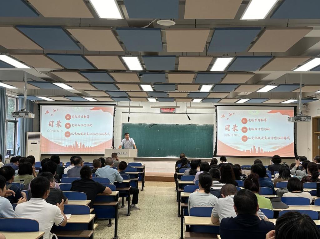 孙立辉从党纪学习教育部署、党纪与师德师风、以党纪促进良好师德师风养成等三个方面,并结合近年来教育系统中不正之风和身边的典型案例,深入分析了加强党纪学习教育的重要性和紧迫性,强调了党纪在维护党的团结统一、推动党的事业发展中的关键作用,要求全体教职工严守纪法,涵养师德,在党纪学习教育中筑牢师德师风底线。