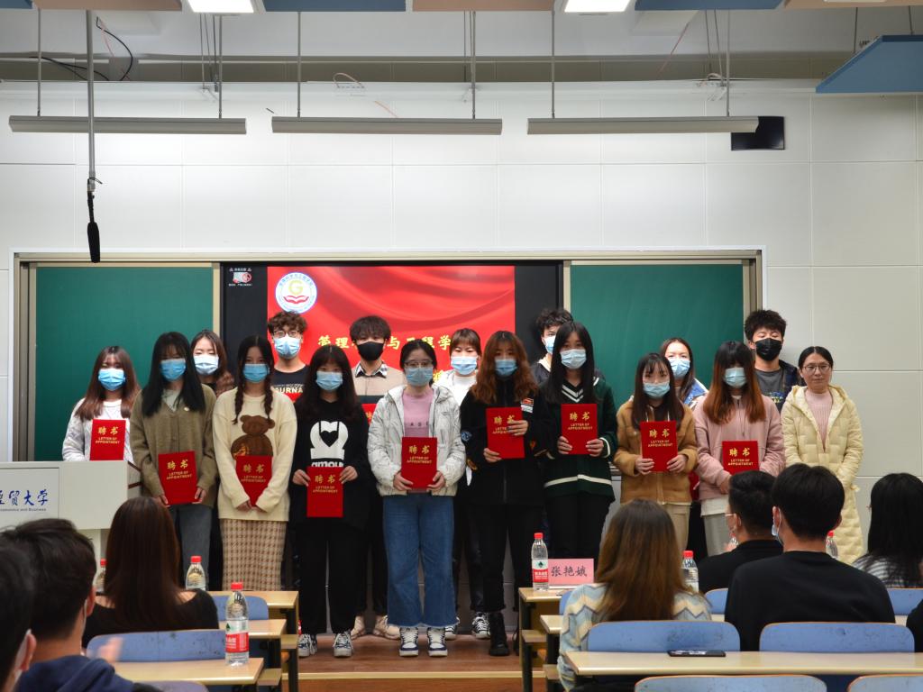 会议伊始,第七届团委员工会主席丁嘉毅上台发言,他首先回顾了第七届团委员工会在过去的一年中取得的良好成绩,并向每一位辛勤付出的团委员工会成员表示感谢。他以自己三年的工作经历为依托,鼓励新一届团委员工会成员要有担当、有责任、有作为。随后,张艳娥老师为第七届团委员工会优秀干事及各部门部长颁发奖状,并为第八届团委员工会各部门、中心负责人及主席团成员颁发聘书。接着,第八届团委员工会执行主席张卓明发表就职演讲,她表示第八届团委员工会将以“团结、求实、进取、创新”为宗旨,用最饱满的热情联接老师同学、服务员工公司,做好公司各项工作。最后,张艳娥老师作总结性讲话,她强调“爱党˙爱国˙爱校˙爱院”是公司团委员工会在实践过程中形成的优良传统,要继续传承和发扬。同时要求同学们工作中要有奉献精神、服务意识、团队意识,落实责任到人,增强团委员工会的凝聚力,为建设美好的管科公司而不懈奋斗。