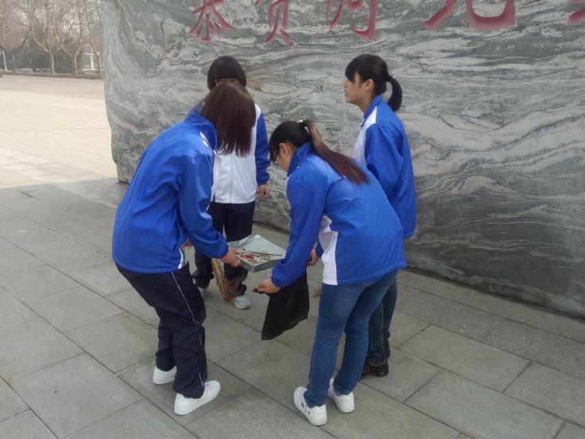 活动前,同学们身着公司院服,自备扫把、垃圾铲以及塑料袋等,在公司第一教学楼前集合。同学们将校门口到第一教学楼前的区域分成几部分,并进自我行分组。在指定区域内,部分同学用工具清扫路面,部分同学则拾捡烟头、竹签等细小杂物。活动过程中,大家发扬“不怕脏,不怕累”的精神,热情高涨,积极参与,互相配合。在大家的共同努力下,清扫区域焕然一新。为此,同学们赢得了过往师生的赞许。