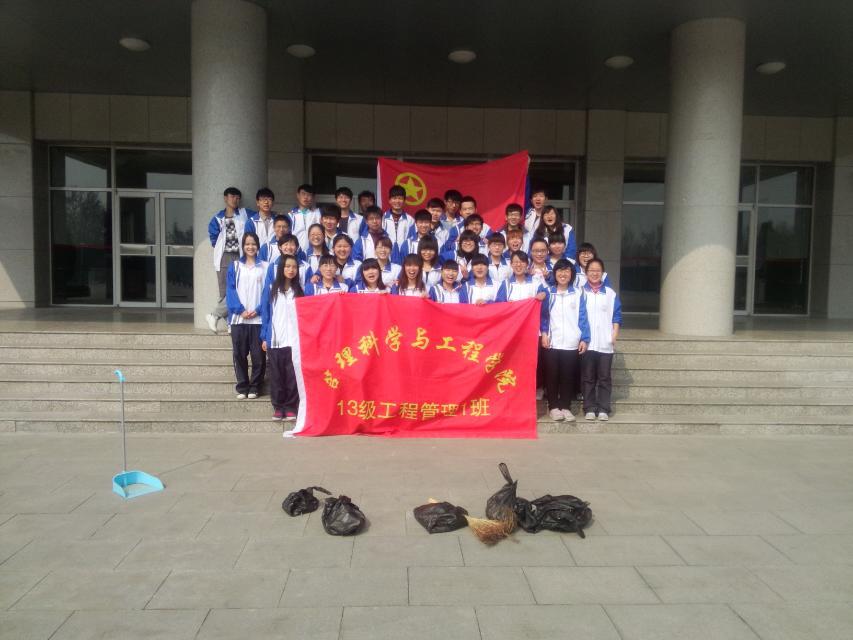 3月23日,管理科学与工程公司2013级工程管理1班开展了以“雷锋精神在我心”为主题的学雷锋校园卫生清扫活动。2013级工程管理1班全体同学参加此次学雷锋活动。