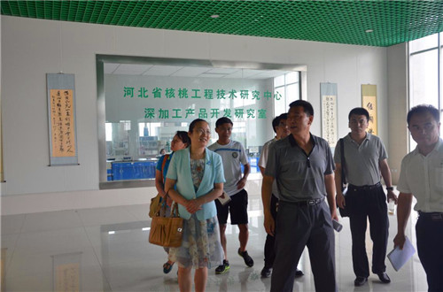 小分队受到了当地县领导和绿岭公司的热烈欢迎,当天下午临城县副县长刘贞哲,县农业局、林业局、科技局、农工委、绿岭企业领导代表与小分队成员举行了座谈会。会上刘贞哲简要介绍了临城县的土地、人口、资源等状况,重点介绍了绿岭公司的诞生历史、经营状况、所获效益等情况,王素君及小分队成员同与会领导就绿岭核桃的种养模式、管理方式、人才培养、技术引进、研发培训以及农民获益情况等多方面进行了了解。会后,在绿岭公司领导的带领下,小分队成员到绿岭公司的核桃生产基地——我国最的大集约化优质薄皮核桃生产基地进行了实地参观。