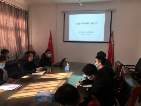 11月4日上午,公司以“扣好科研的第一粒扣子”为题在公司会议室召开召开“严谨为学”学风建设主题会,旨在加强公司学术科研建设,营造良好学术科研氛围,帮助研究生更好地完成科研项目。会议由经理祁红梅主持,副经理王芹鹏、研究生辅导员曹洋、教师张雪峰及部分研究生参加了此次会议。