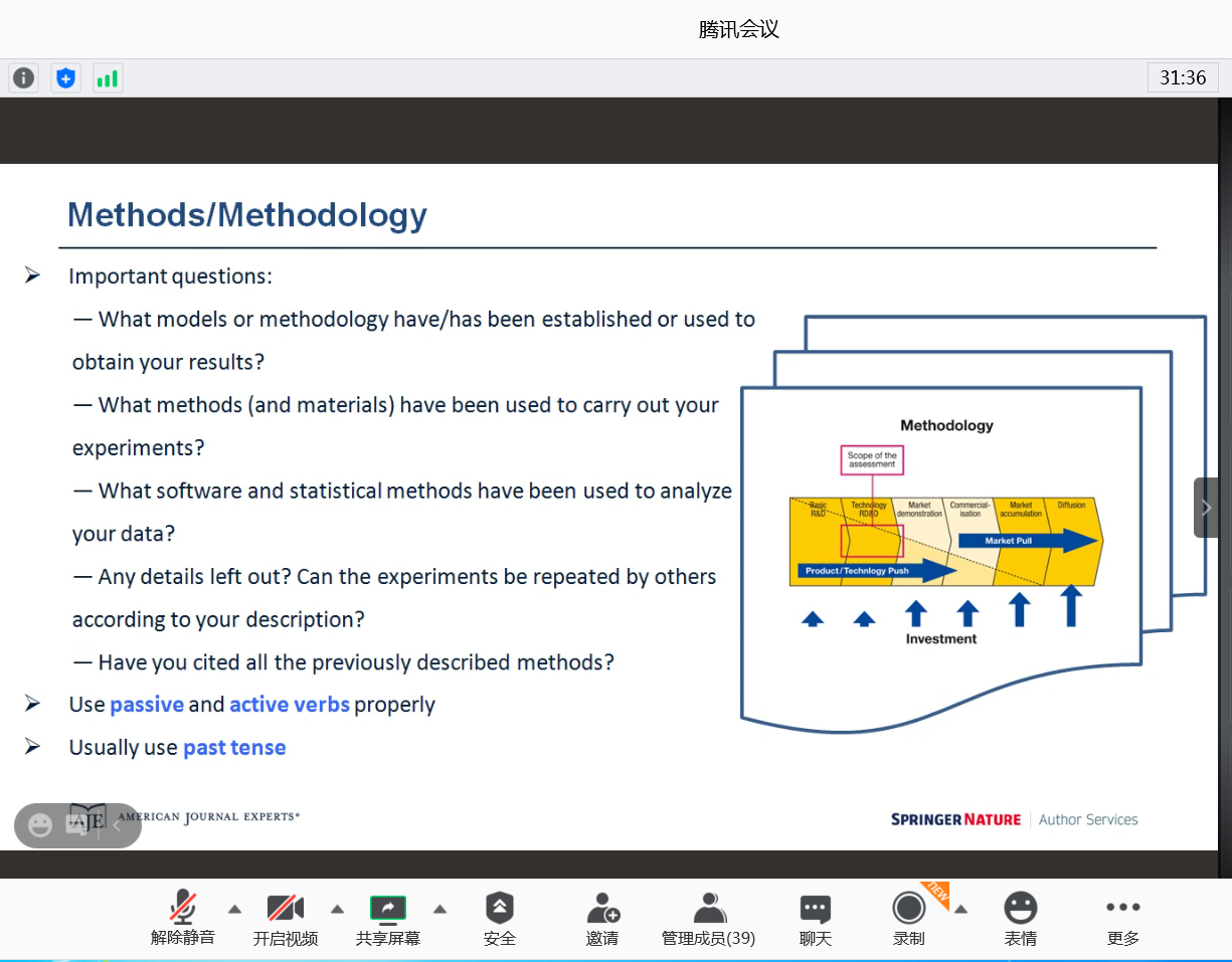 10月29日,应公司邀请,Springer Nature美国期刊专家崔韶博士通过腾讯会议平台作题为《英文科研论文写作策略和技巧》的线上学术讲座。讲座由公司经理祁红梅主持,公司党委副书记田蓁子及公司部分师生在线聆听了此次讲座。