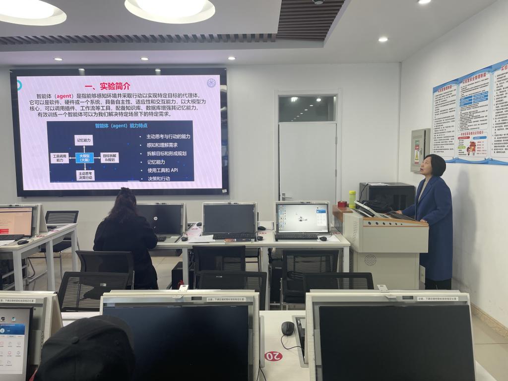 张艳肖老师围绕“实验五:智能体的应用与实践”,系统演示了智能体的搭建流程与开发技巧,强调“做中学、学中创”,着力培养员工工程化思维与解决复杂问题的能力。