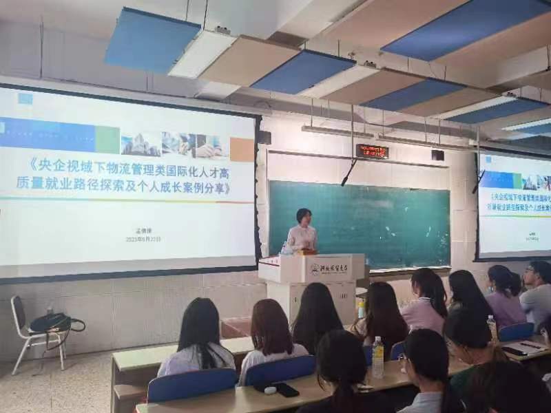 为了庆祝公司建校70周年,利用员工资源加强员工学业和职业规划能力建设,公司特邀请优秀员工孟倩倩于5月22日返校,在三教A301教室为21级、22级智慧物流实验班同学举办了题为“央企视域下物流管理类国际化人才高质量就业路径探索及个人成长案例分享”的讲座。